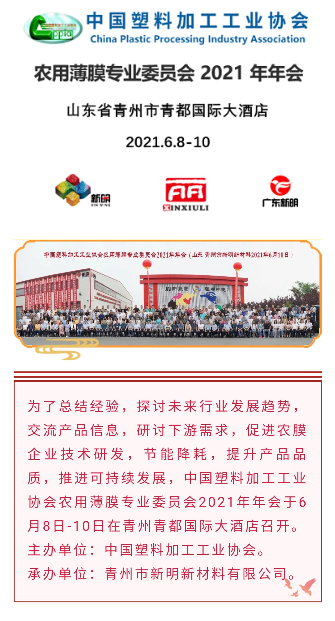 上一頁 會議『倒計(jì)時(shí)』農(nóng)膜專委會年會內(nèi)容搶先看~重磅襲來,干貨滿滿